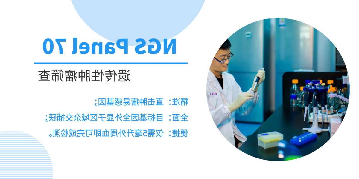 杏彩体育旗舰厅 基于自主研发的ALLNGSTM基因捕获技术开发的NGS-Panel 70 遗传性肿瘤基因检测套餐,覆盖乳腺癌、卵巢癌、结直肠癌、胃癌、食管癌、胃肠道间质瘤、肾癌、前列腺癌、胰腺癌、子宫内膜癌、黑色素瘤、多发性内分泌癌、甲状腺癌等21种遗传性肿瘤。一次性检测70个遗传性肿瘤相关的基因是否存在变异,为首检人群提供遗传性肿瘤患病风险评估,实现遗传性肿瘤的早发现,早预防,早治疗。