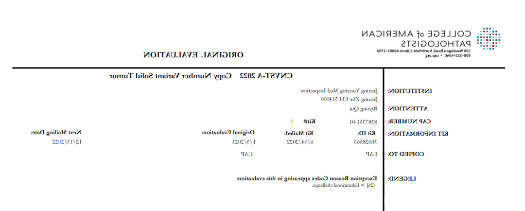 检测结果与CAP官方公布的标准答案完全一致,顺利通过本项测评!
